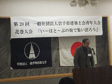 第20回 岩手県建築士会青年大会 花巻大会 「い〜はと〜ぶの街で集い語ろう」 平成27年11月14日に岩手県建築士会青年大会 花巻大会が開催されました。 今回は、花巻支部で継続活動している「耐震授業」を皆様に披露させていただきました。 また、基調講演では、竃リ村設計A・T 代表取締役 木村清且様に、花巻の歴史的建造物を例に、様々な偉人との係わり合いについての考察をお話しいただきました。 事前の準備含め、会員の方々のご協力により無事に大会を終えることができました。ご来賓の方々をはじめ、県内各支部から多くの青年委員の出席を頂き、まことにありがとうございました。 |